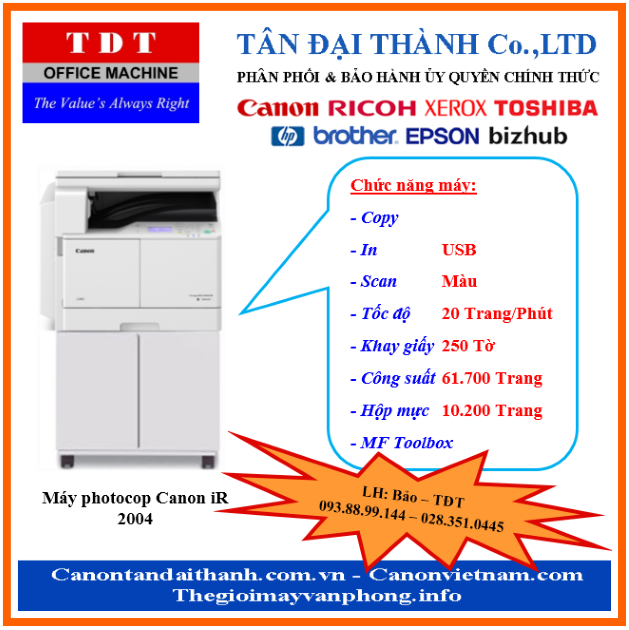 1. Thông số kỹ thuật máy photocopy canon ir 2004: